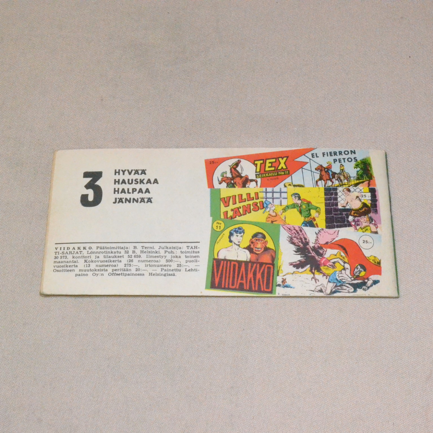 Lievästi kulunut mutta siisti. Kuvien mukainen. Kolmas ilmestynyt numero...