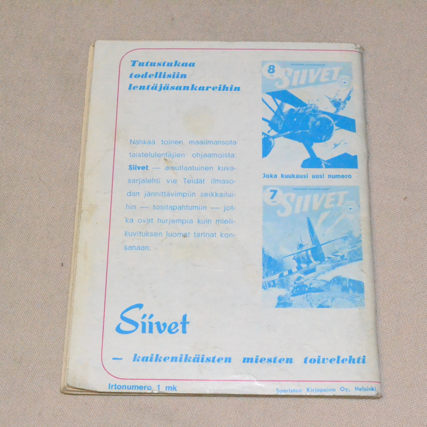 Lehden alakulmissa pientä palapuutosta, takakannessa pientä tahraa. Kuvien mukainen...