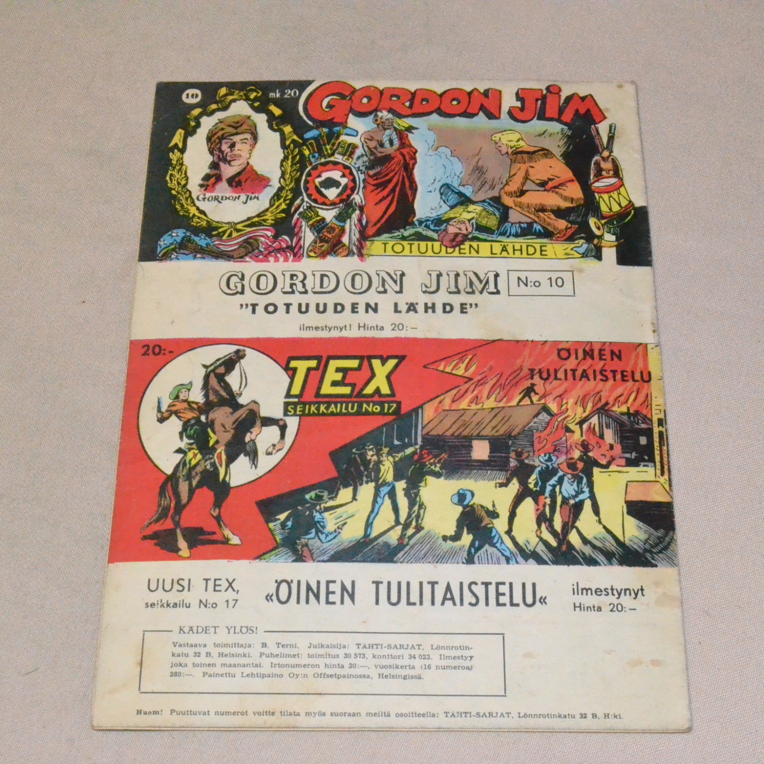 Ensimmäinen Suomessa julkaistu tämän sarjan lehti. Kulunut lehti. Lehden reunassa tahraa ja pientä r..