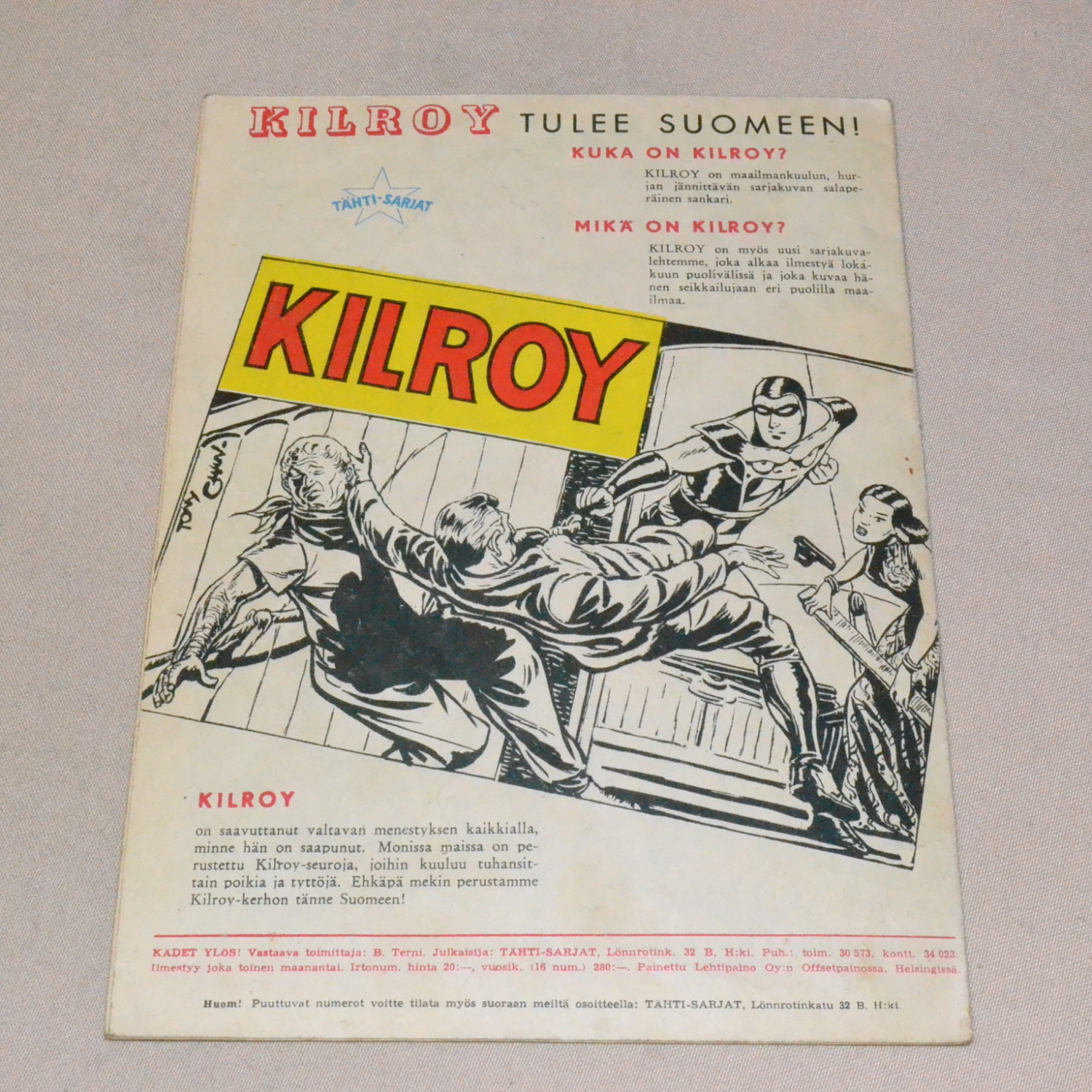 Ensimmäinen Suomessa julkaistu tämän sarjan lehti. Kulunut lehti. Lehden reunassa tahraa ja pientä r..