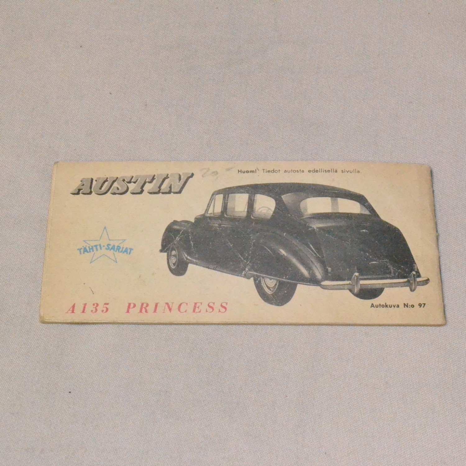 Kulunut lehti. Kanteen kirjoitettu nimi. Kuvien mukainen.