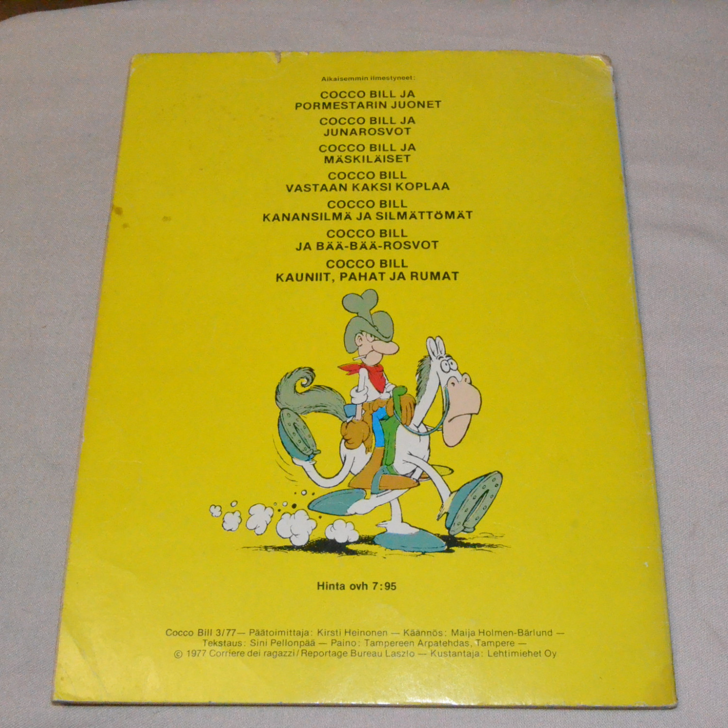Kansissa kevyttä kulumaa, mutta yleisilmeeltään poikkeuksellisen siisti. Takakannessa vanha hinta ly..