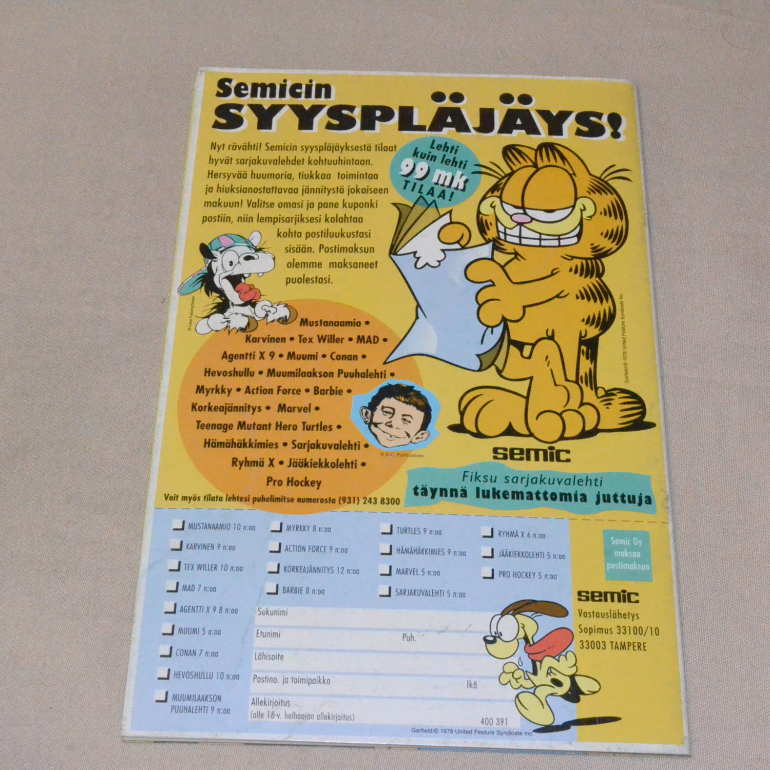 Lehden kulmassa taitos, kannessa vanha hintalappu. Yleisilmeeltään melko siisti. Kuvien mukainen...