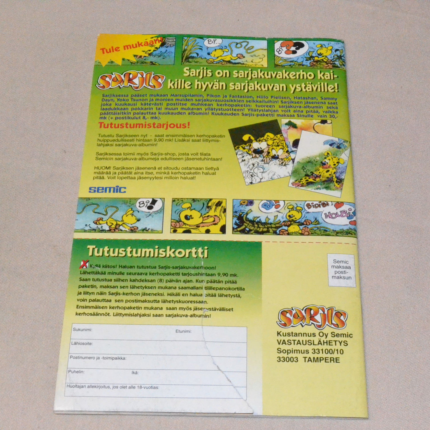 Lehden kulmassa taitos, kannessa vanha hintalappu. Yleisilmeeltään melko siisti. Kuvien mukainen...