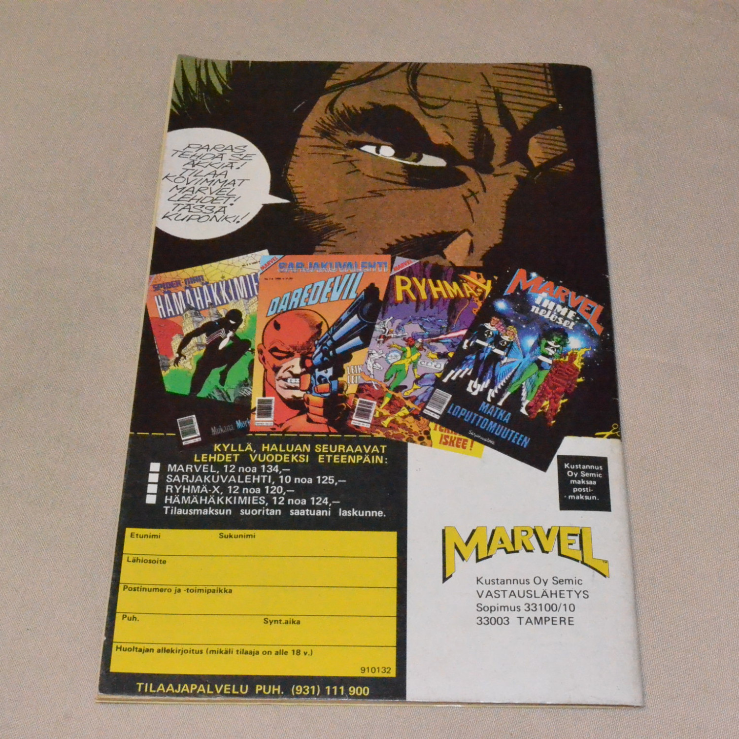Erittäin siistissä kunnossa. Marvel saga-liite ei ole mukana. Kuvien mukainen...