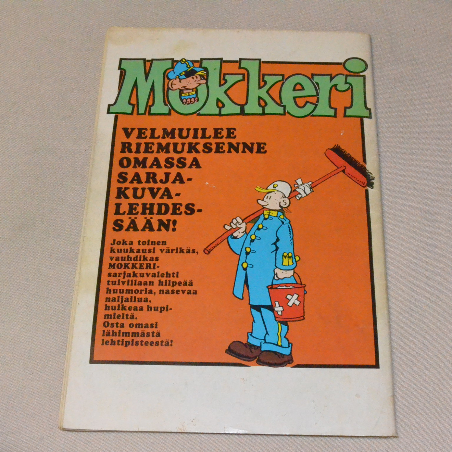 Altistunut kosteudelle. Lehdessä on pientä kurttua ja aaltoilua ja niiteissä ruostetta. Takakannessa..