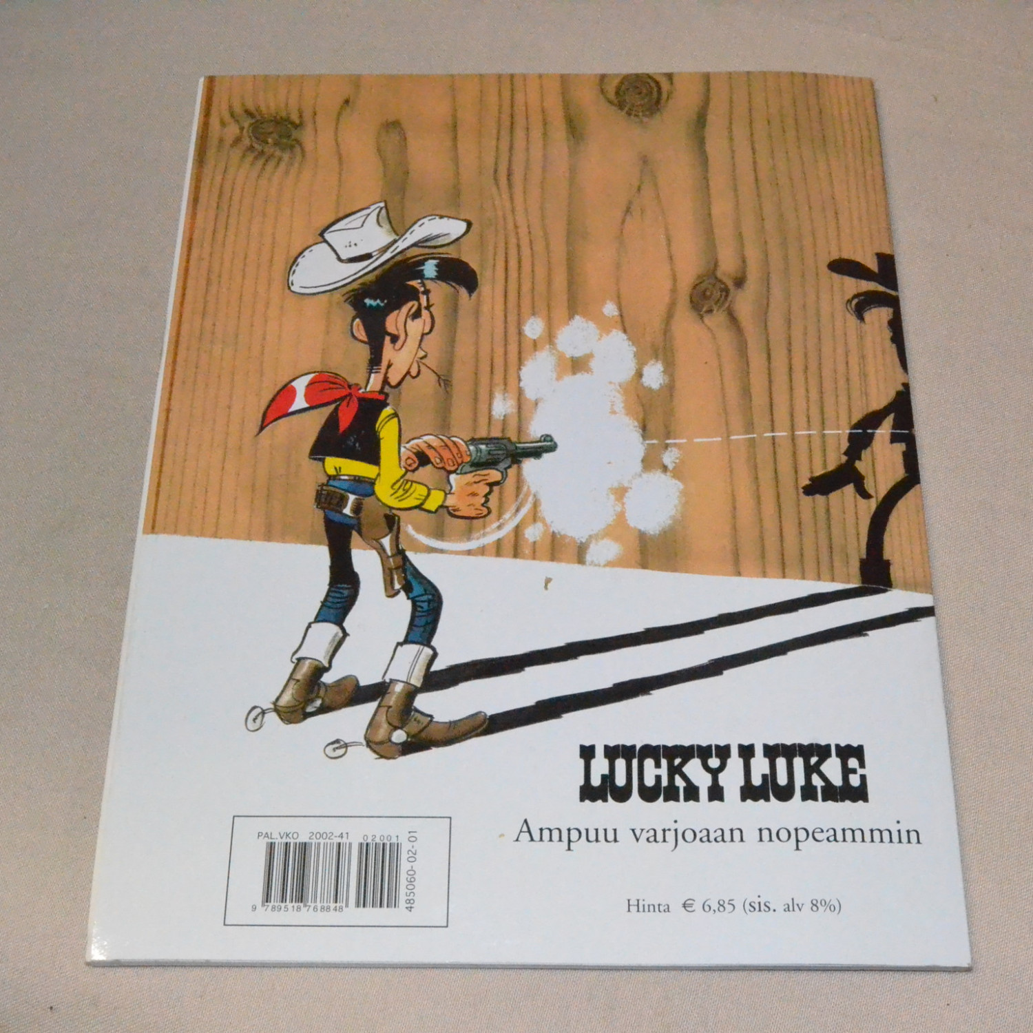 Ensimmäinen Suomessa julkaistu Lucky Luke -albumi. 1. painos vuodelta 1971. Kohtuullisen siistikunto..