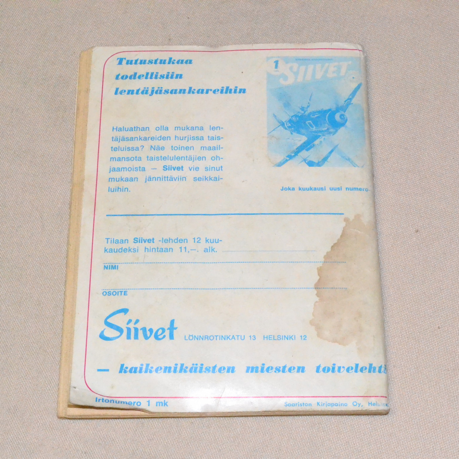 Kulunut lehti. Alkusivuilla kulmataitoksia, kannessa reilun sentin repeämä / palapuutos. Kuvien muka..