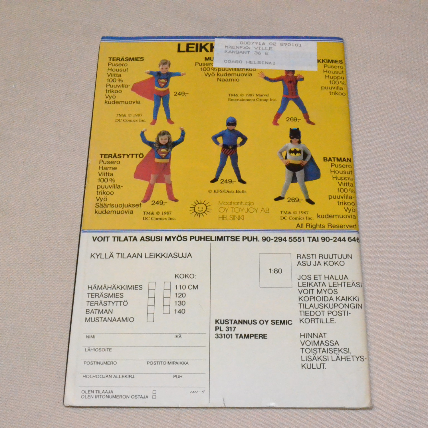 Takakannesta peitetty osoitetiedot mustalla tussilla, muuten siisti. Kuvien mukainen...