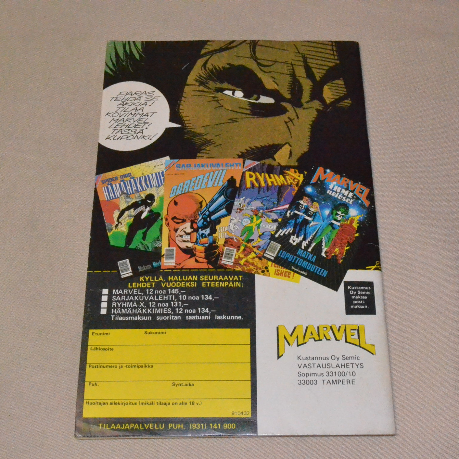 Kansissa kulumaa, loppupään sivuilla pientä kosteusjälkeä. Marvel saga-liite on mukana ja hyvässä ku..