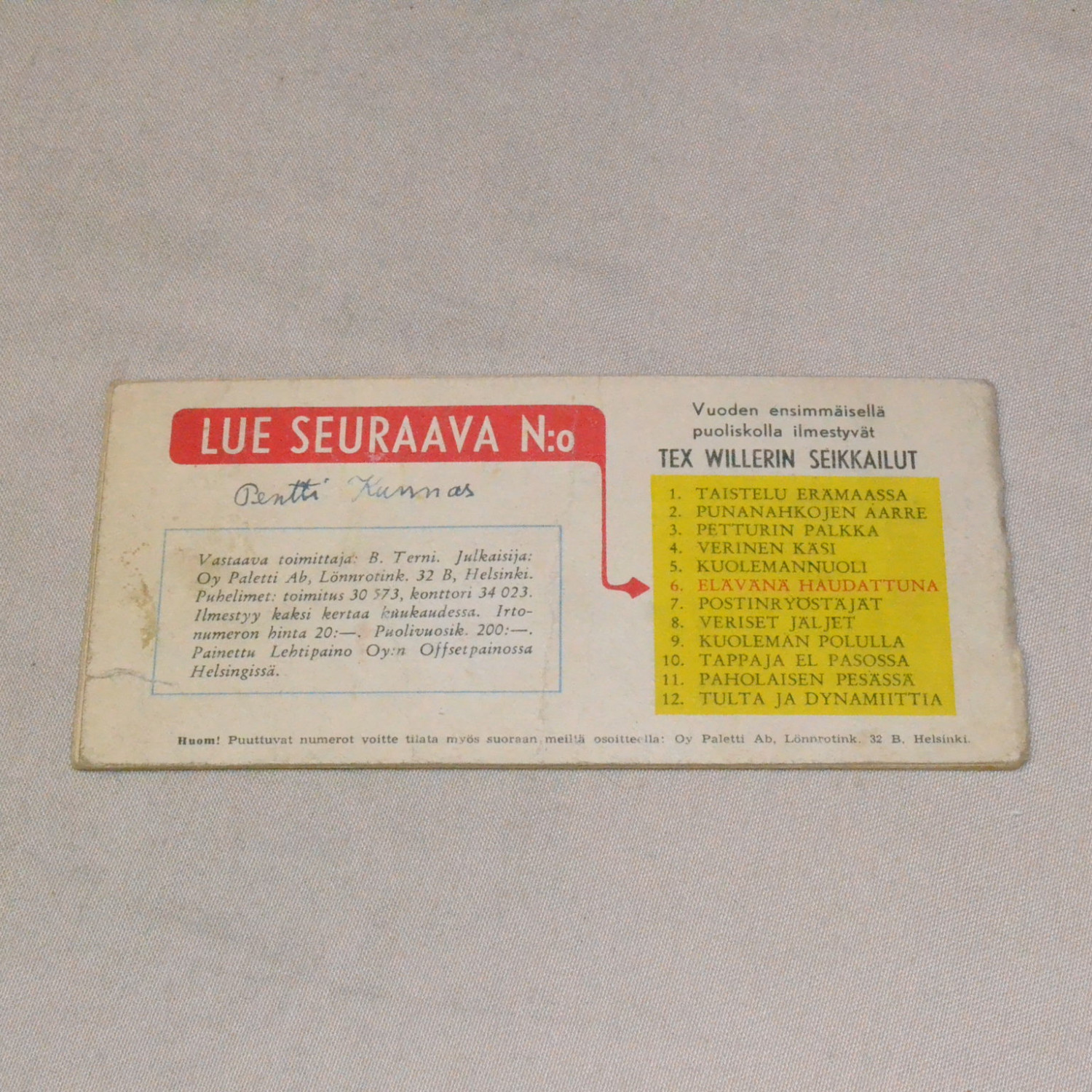 Tex liuska 06 - 1953 Elävänä haudattuna (1. vsk)
