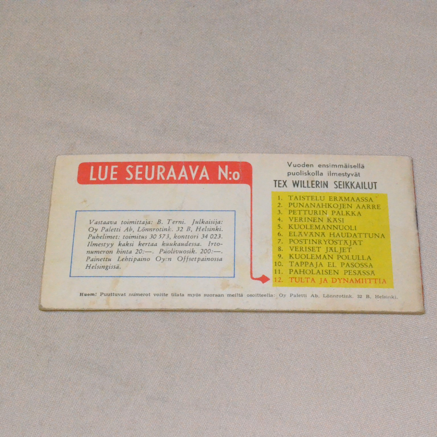 Tex liuska 12 - 1954 Taistelu pimeässä (2. vsk)