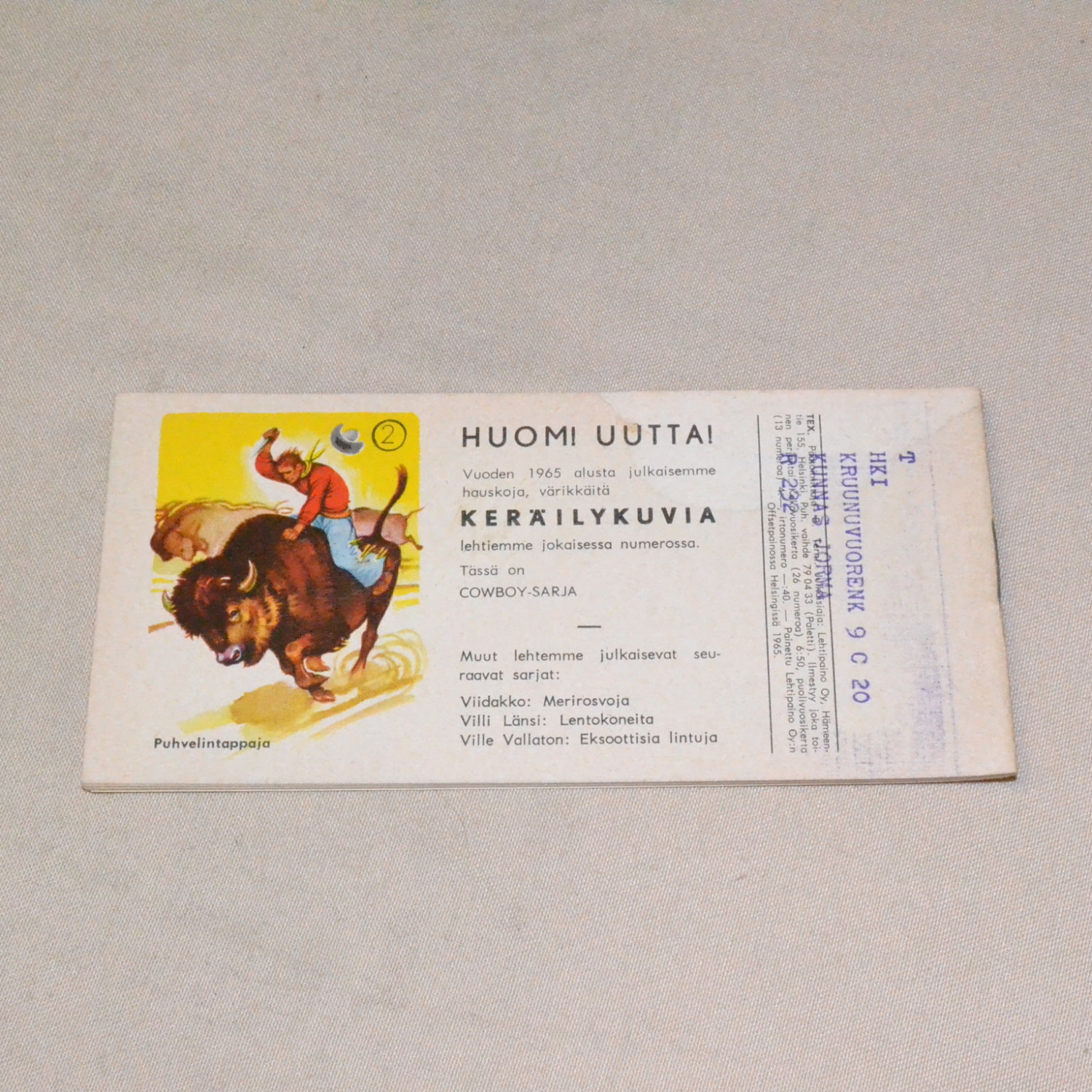 Kulunut mutta kohtuukuntoinen. Selän päissä teippauksen jäljet (ei kuitenkaan repeämää). Kuvien..