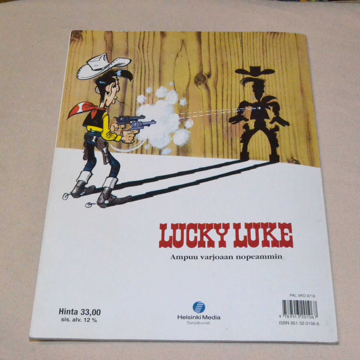 Ensimmäinen Suomessa julkaistu Lucky Luke -albumi. 1. painos vuodelta 1971. Kohtuullisen siistikunto..