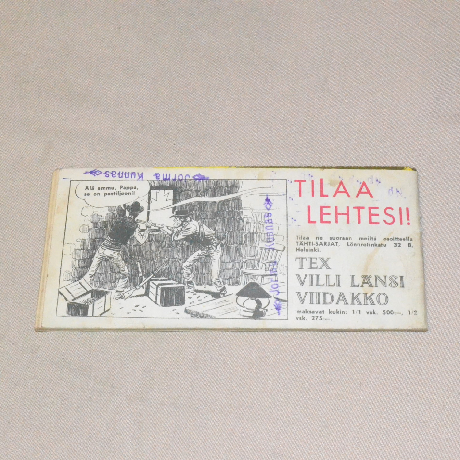 Kulunut mutta kohtuukuntoinen. Takakannessa nimileimoja. Kuvien mukainen.