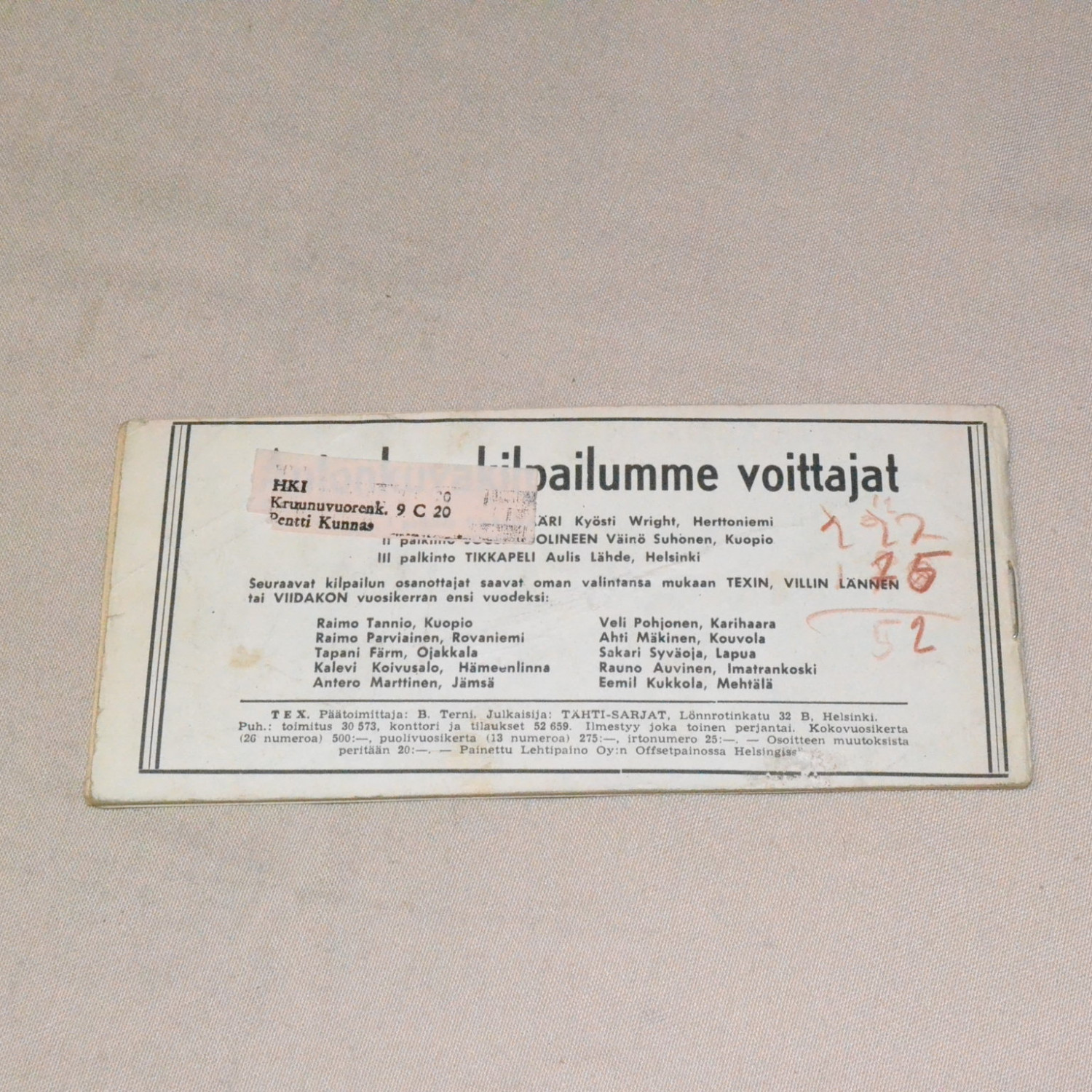 Tex liuska 26 - 1954 Rosson rosvokopla (2. vsk)