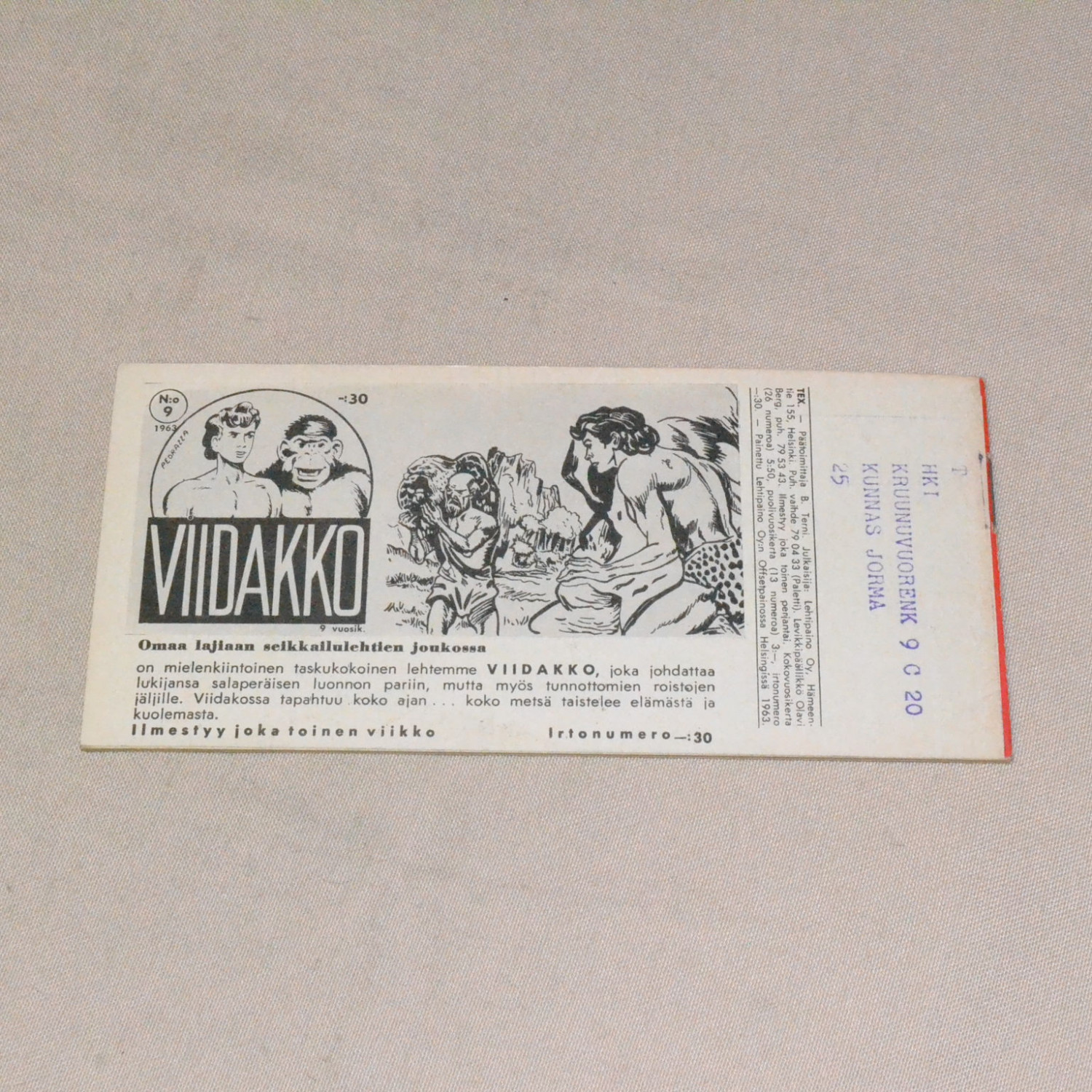 Kulunut mutta kohtuukuntoinen. Selän päissä teippauksen jäljet (ei kuitenkaan repeämää). Kuvien..