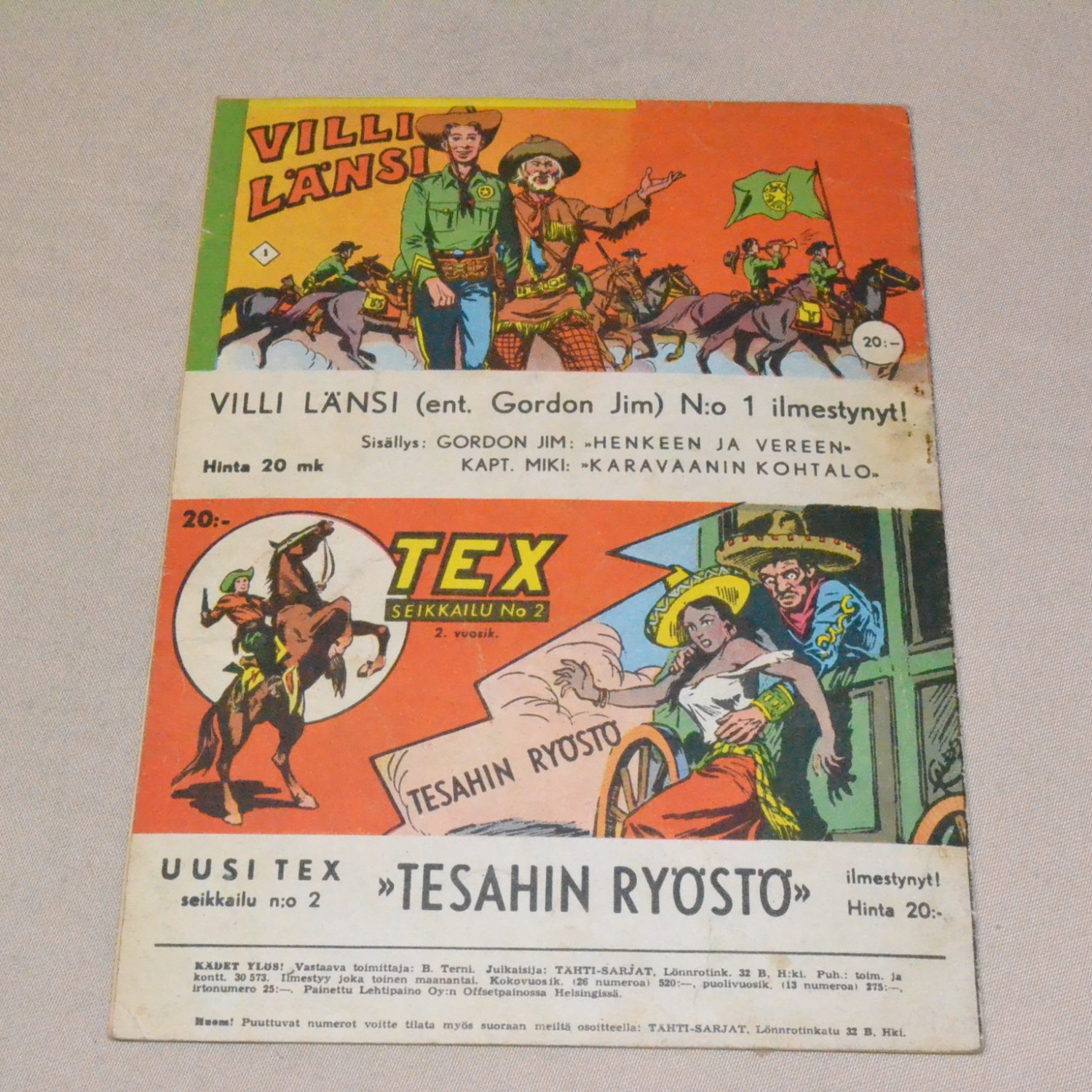 Kulunut mutta kohtuukuntoinen. Selkämyksen puoleisella sivulla mappireiät läpi lehden. Kuvien mukain..