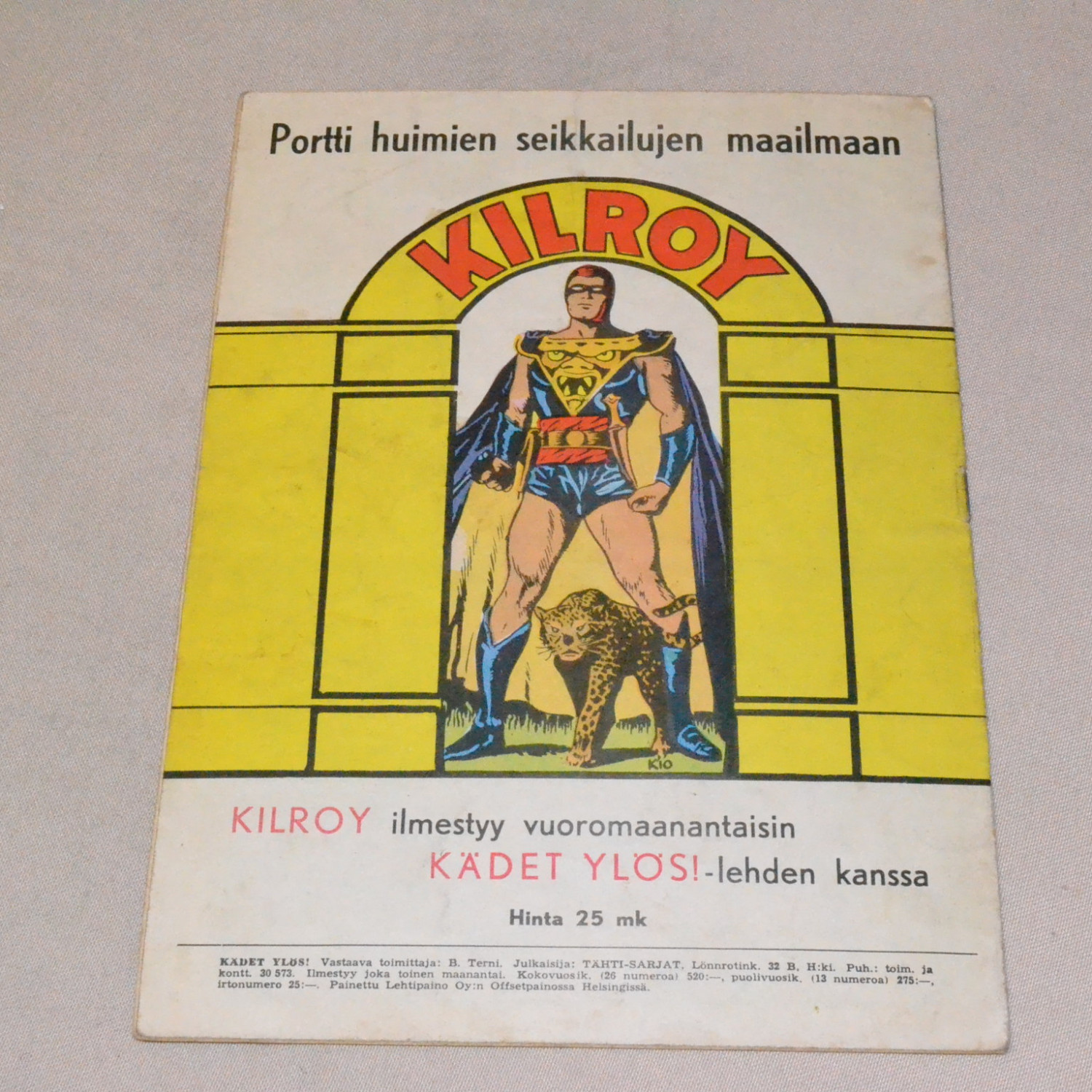 Kulunut mutta kohtuukuntoinen. Selkämyksen puoleisella sivulla mappireiät läpi lehden. Kuvien mukain..