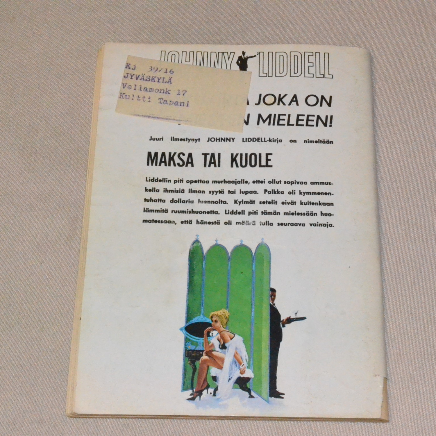 Selän alakulmassa teippauksen jäljet. Kannen otsikkotekstin ensimmäinen kirjain väritetty. Kuvien mu..