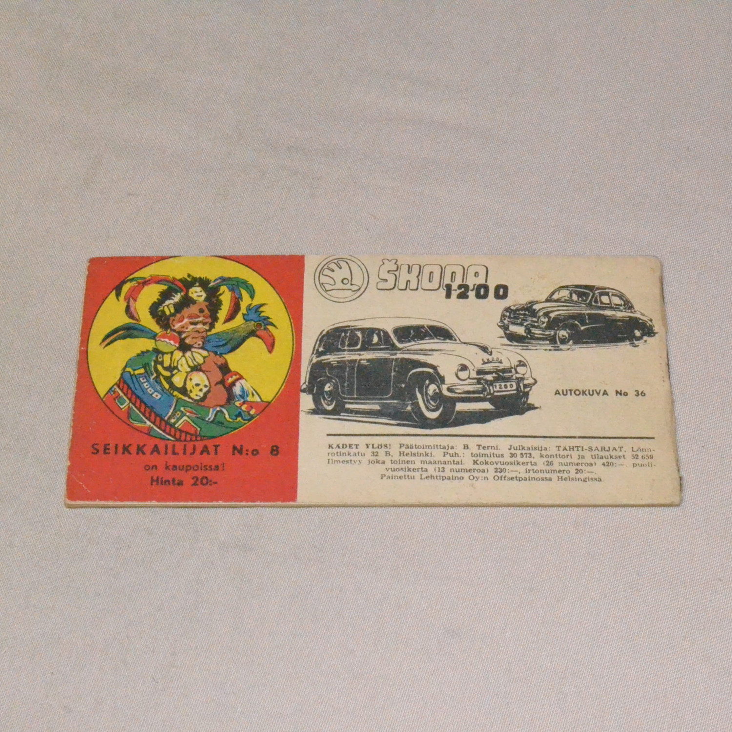 Ensimmäinen Suomessa julkaistu tämän sarjan lehti. Kulunut lehti. Lehden reunassa tahraa ja pientä r..
