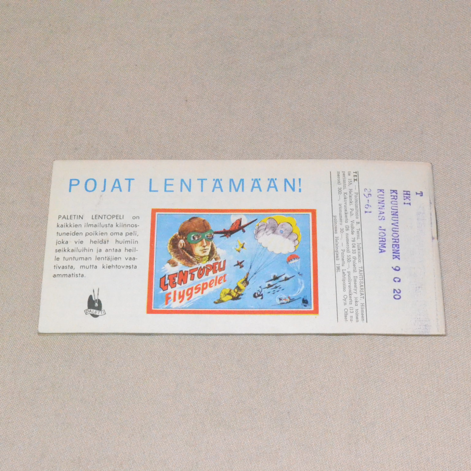 Lievästi kulunut mutta melko siisti. Takakannessa pientä tahraa. Kuvien mukainen...