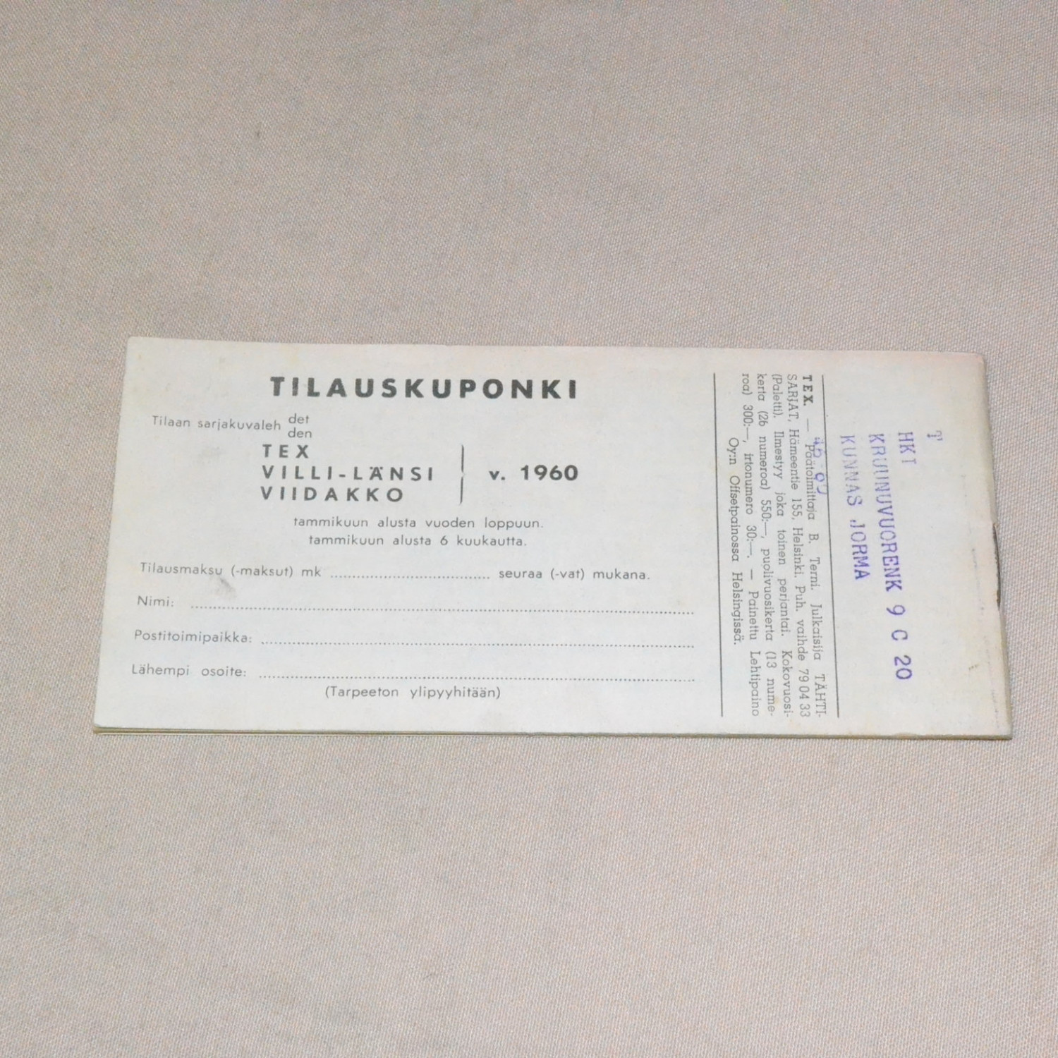 Kansissa kulumaa ja pientä tahraa. Yleisilmeeltään kuitenkin siisti. Kuvien mukainen...