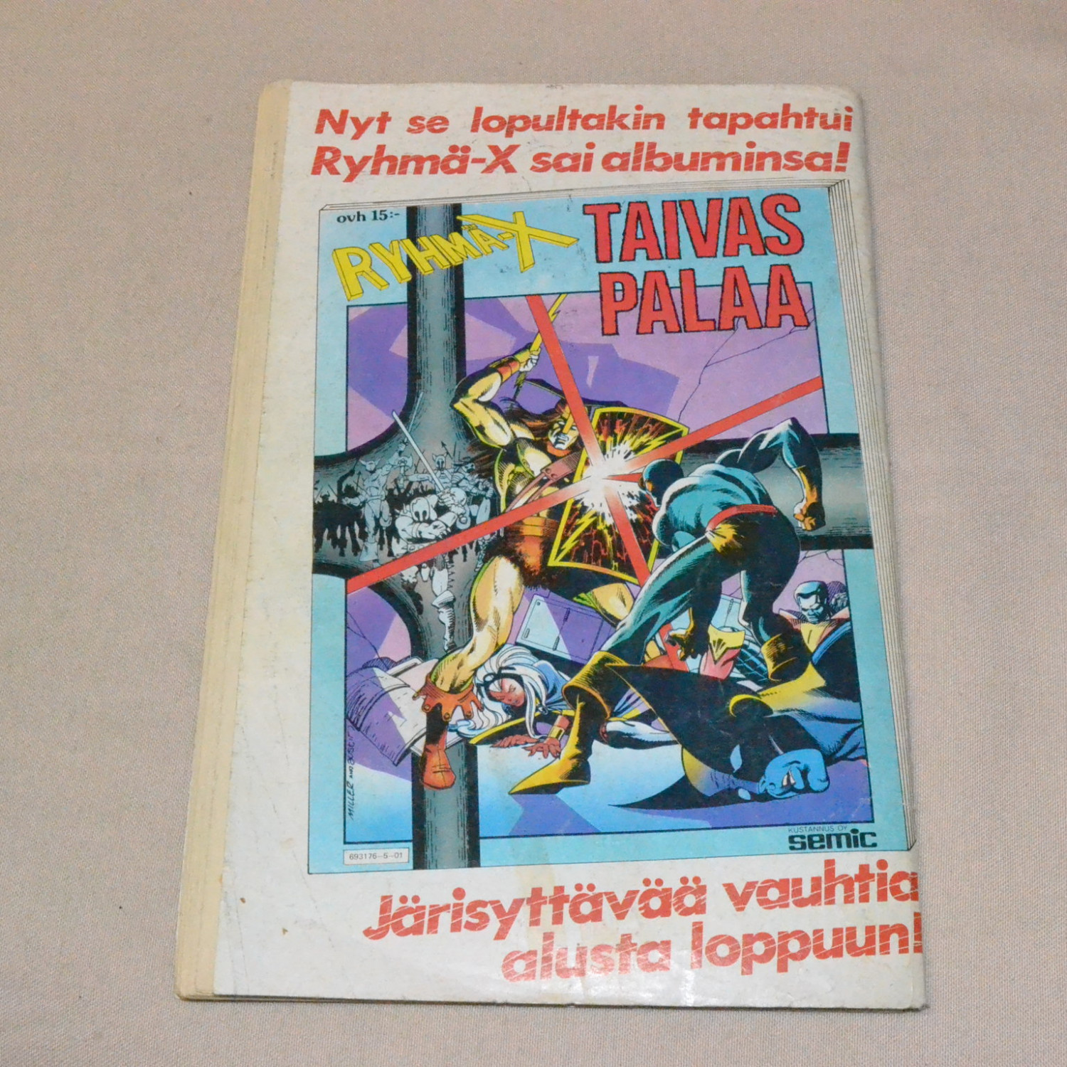 Kansissa runsaasti kulumaa ja pieni palapuutos kannen kulmassa. Kuvien mukainen.