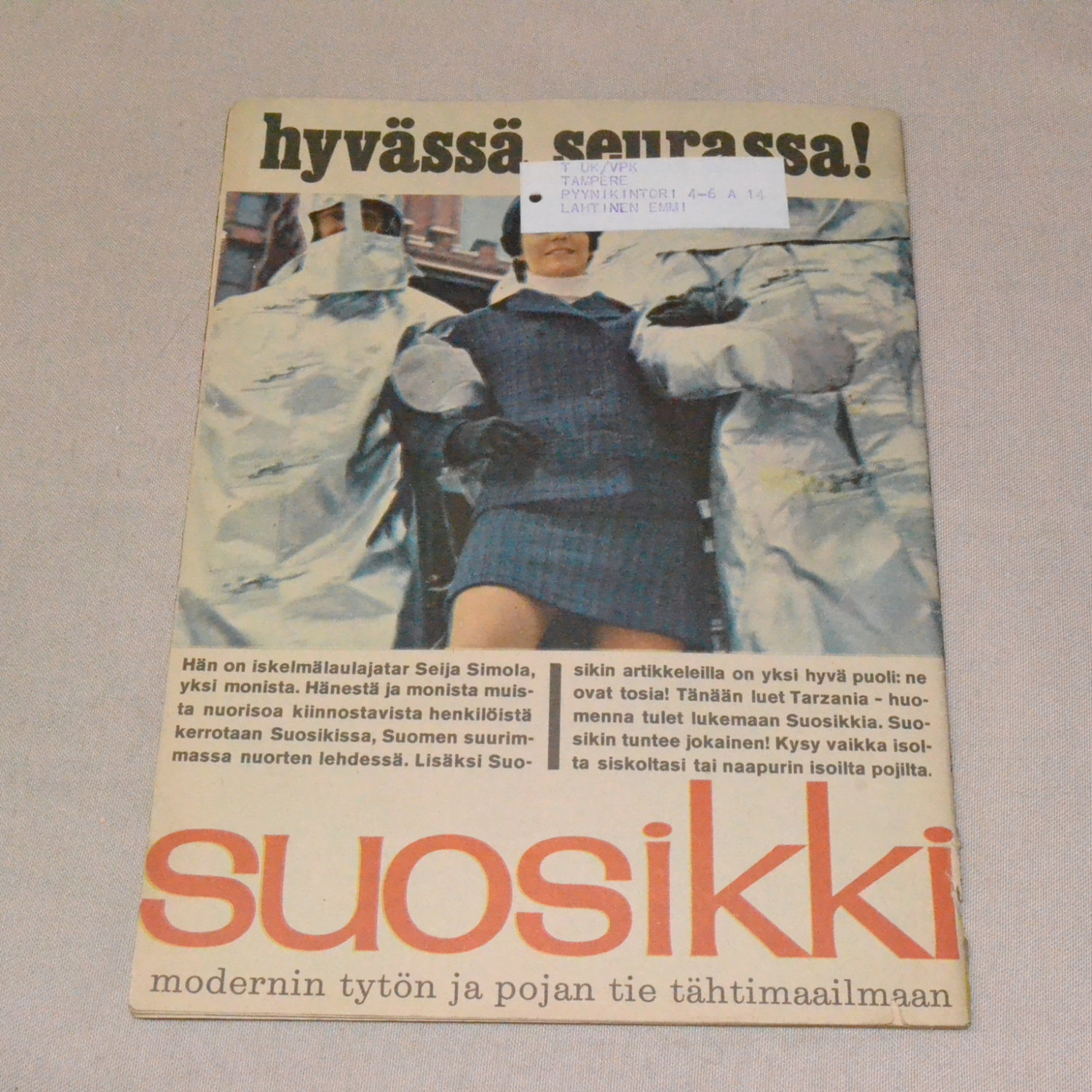 Kulunut mutta melko siisti. Kanteen kirjoitettu nimi, lehden kupongit täytetty. Sisäsivuilla muutama..