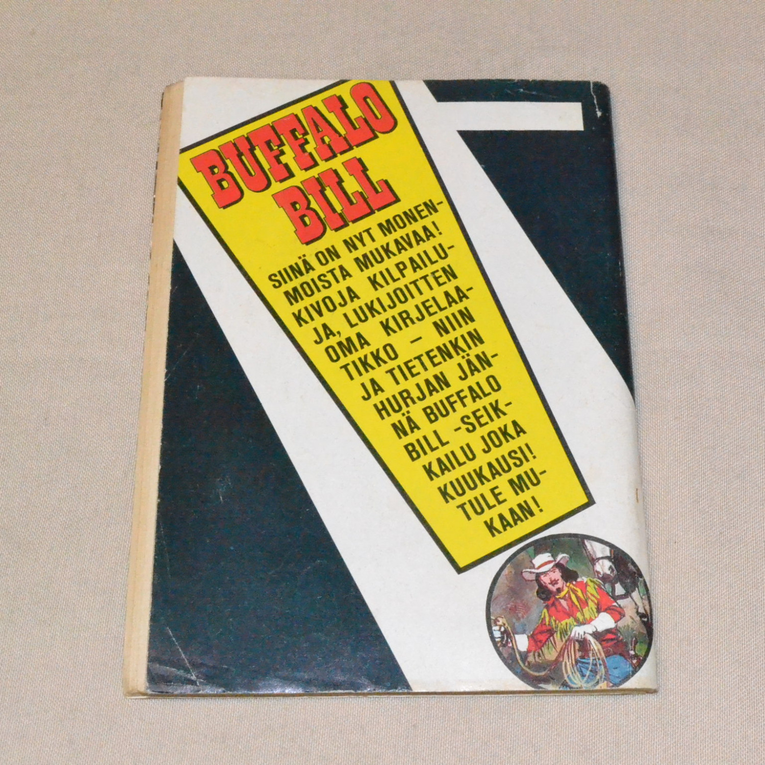 Lievästi kulunut mutta melko siisti. Takakannessa pientä taitosta ja reilun sentin repeämä. Kuvien m..