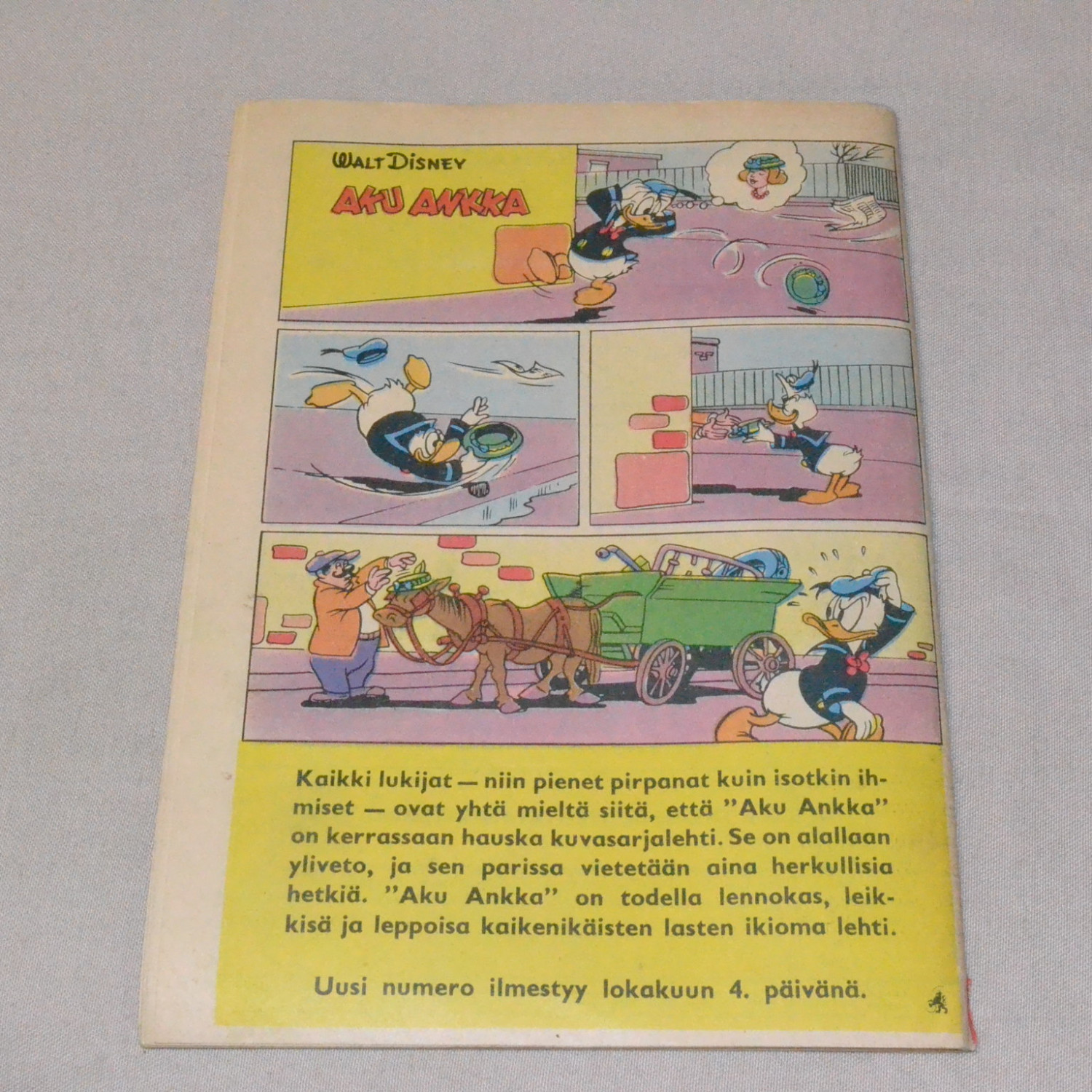 Selkä auki alhaalta sentin verran, kannessa pientä tahraa. Muilta osin siisti. Kuvien mukainen.