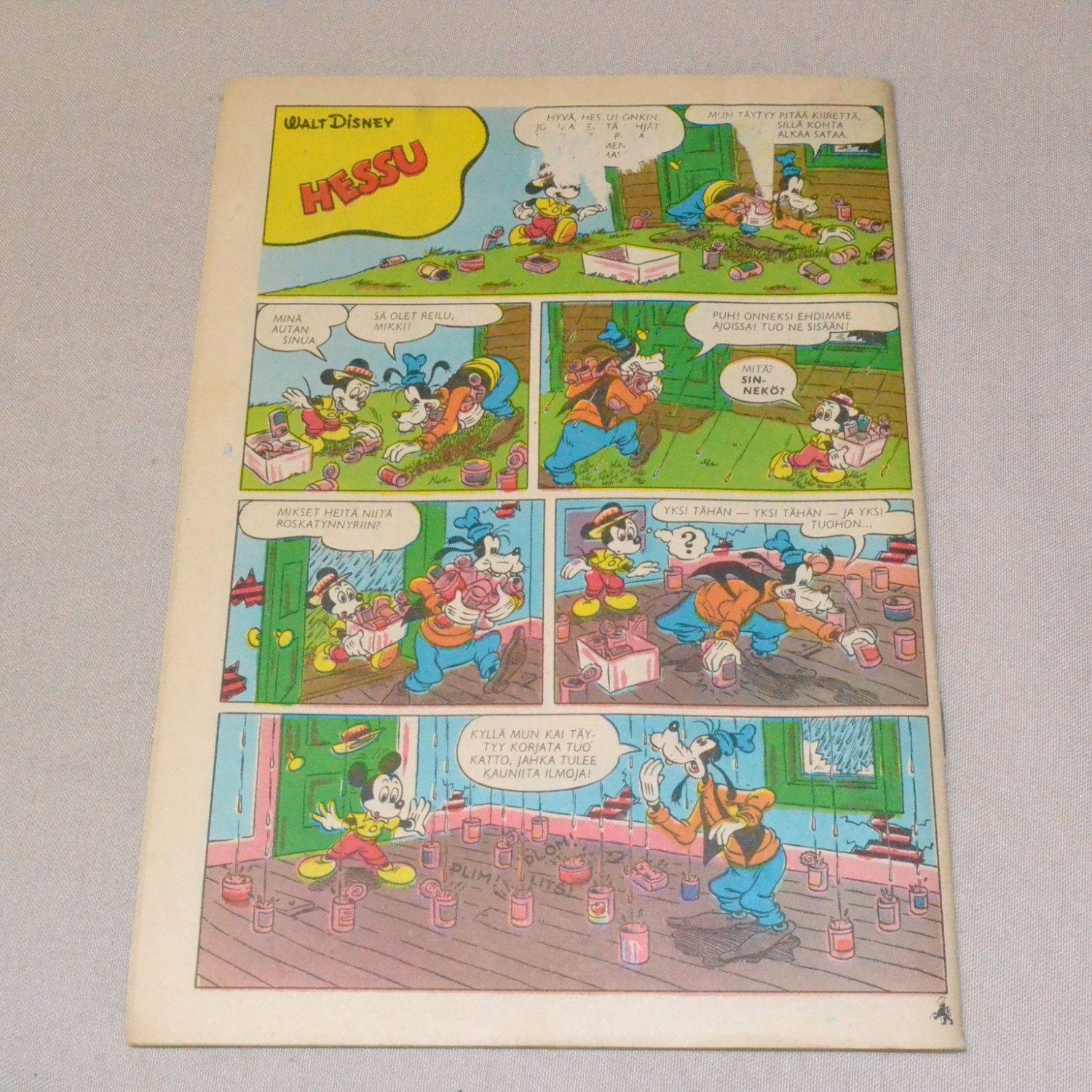 Kulunut lehti. Selän alaosassa repeämä, joka jatkuu hieman kannen puolella. Selkä auki reilun sentin..