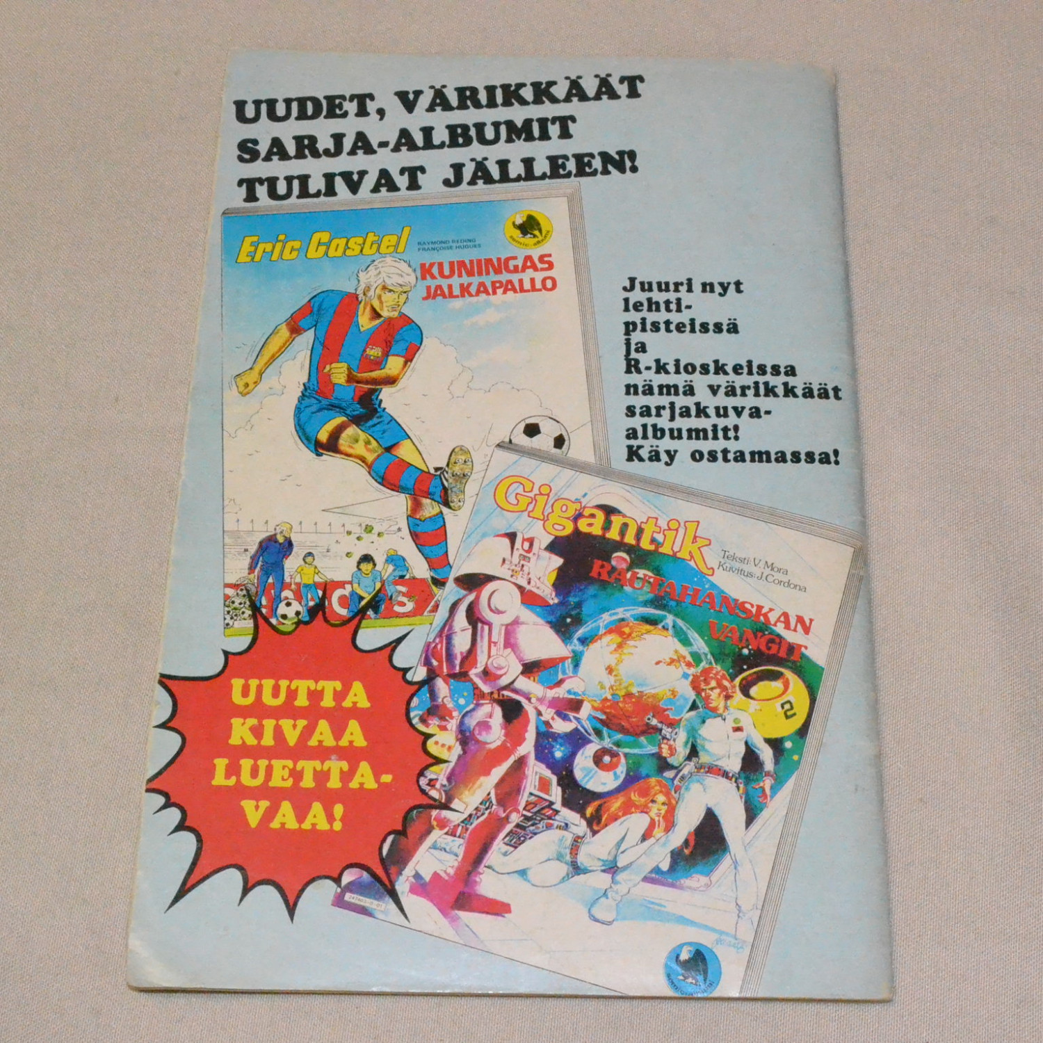 Lievästi kulunut mutta siisti. Ensimmäisen sisäsivun tyvessä 2-3 sentin repeämä. Kuvien mukainen. Vu..