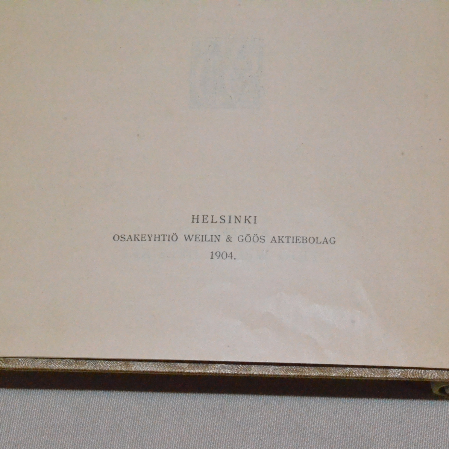 Osakeyhtiö Weilin & Göös Aktiebolag 1904, kovakantinen kuvakannellinen. Kansissa pientä kulumaa, ja hienoista tahraa, yleisilmeeltään kuitenkin siistissä kunnossa. Kuvien mukainen.
