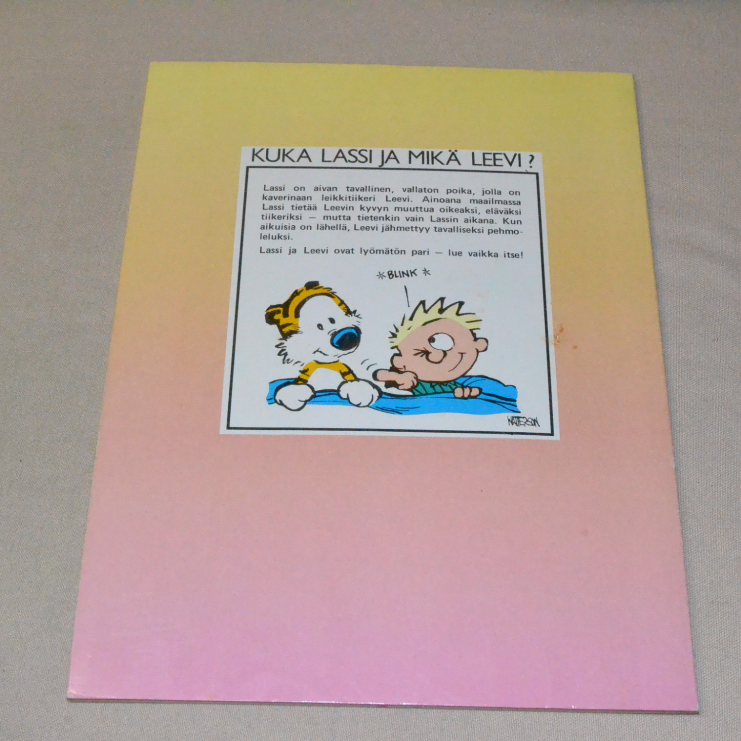 1. ja ainoa painos vuodelta 1988. Kansissa kulumaa, kanteen tullut myös vanhasta hintalapusta hieman mustetta läpi hintalapun. Sivut vielä juuri ja juuri kiinni. Toinen harvinaisista Lassi ja Leevi -albumeista. Kuvien mukainen.
