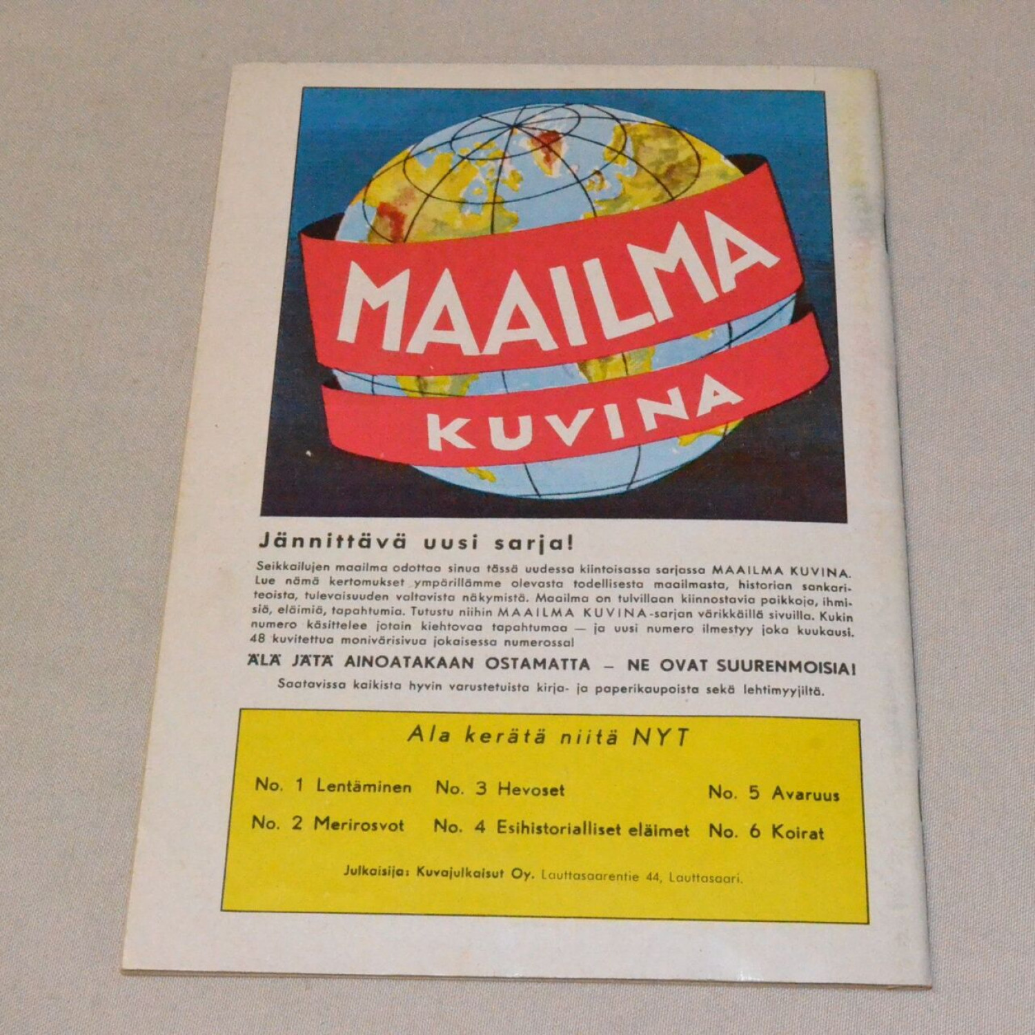 Kansien reunoissa pientä nirhaumaa ja kulumaa, muuten siisti. Kuvien mukainen. Sarjan harvinaisemman..