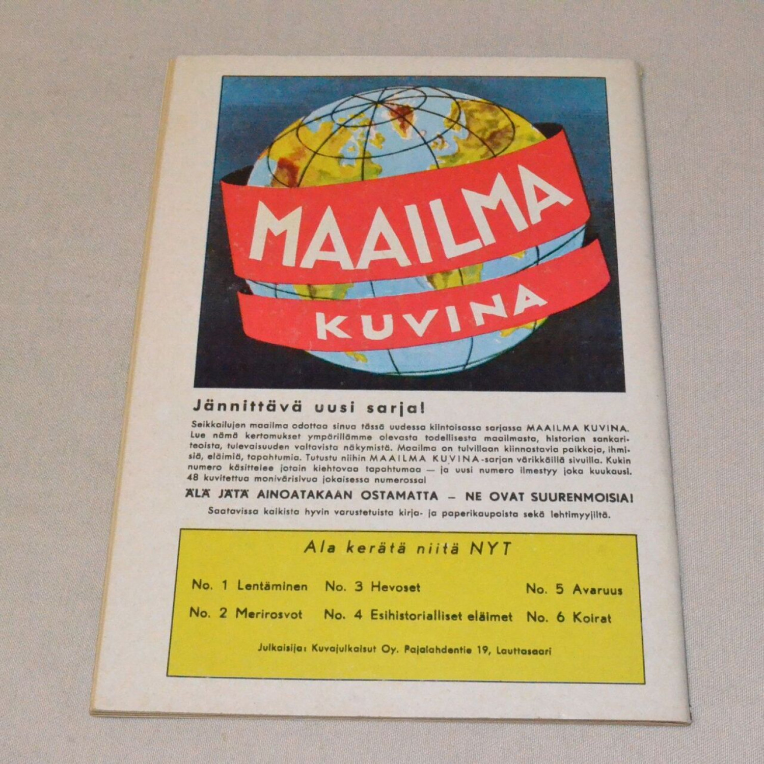 Kansien reunoissa pientä nirhaumaa ja kulumaa, muuten siisti. Kuvien mukainen. Sarjan harvinaisemman..