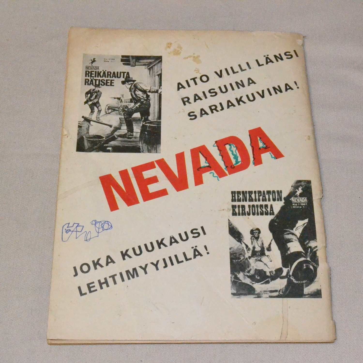 Selkä auki niittien välistä pitkältä matkalta, selkä muutenkin rispaantunut. Selkää myös korjailtu liimaamalla. Kannen reunassa pieni palapuutos, kannen yläkulmassa pieni kosteusjälki. Takakannessa tahraa ja pientä kynänjälkeä, loppupään sivujen alakulmassa pientä kurttua. Kuvien mukainen. Harvinainen numero.