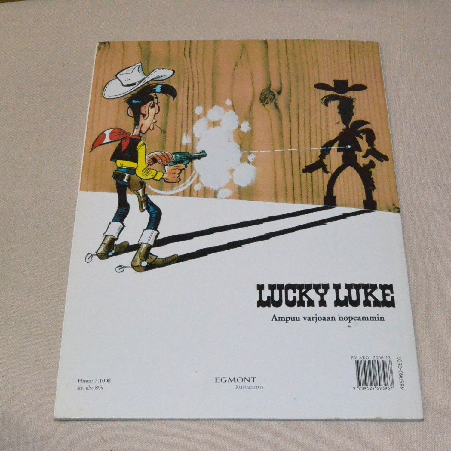 Ensimmäinen Suomessa julkaistu Lucky Luke -albumi. 1. painos vuodelta 1971. Kohtuullisen siistikunto..