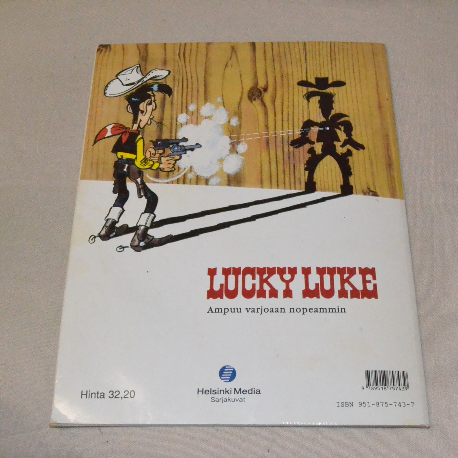 Ensimmäinen Suomessa julkaistu Lucky Luke -albumi. 1. painos vuodelta 1971. Kohtuullisen siistikunto..