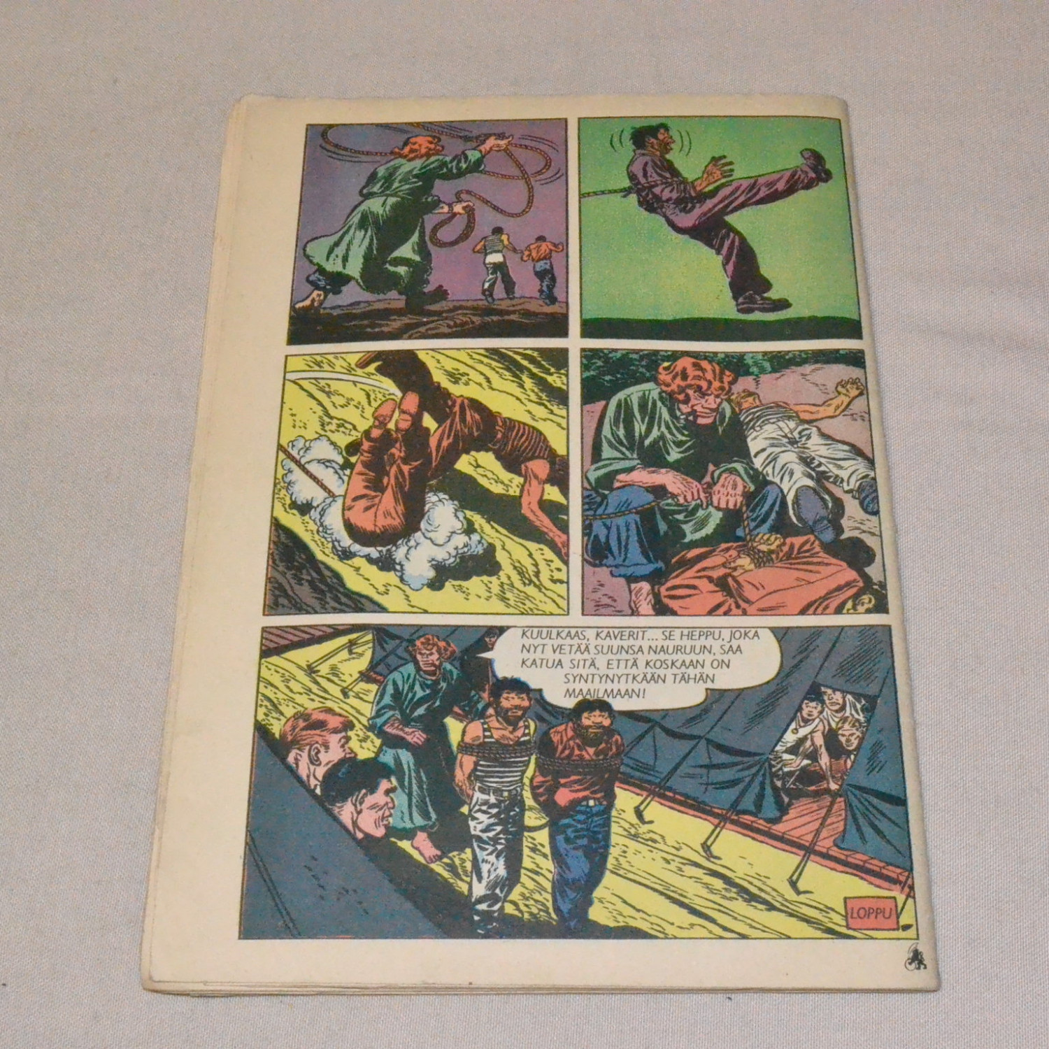 Kulunut mutta kohtuukuntoinen. Yläniitissä ruostetta, sivuilla pieniä kulmataitoksia. Kuvien mukaine..